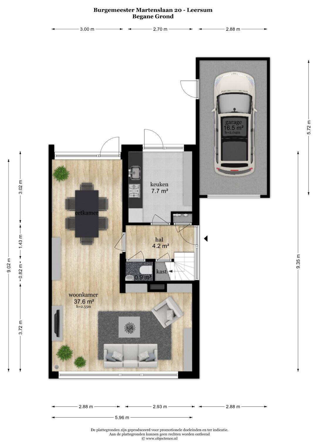 Op de begane grond bevindt zich aan de voorzijde de woonkamer, met aansluitend de eetkamer en dichte keuken aan de achterzijde. Vanuit de keuken en eetgedeelte loop je direct de tuin in.