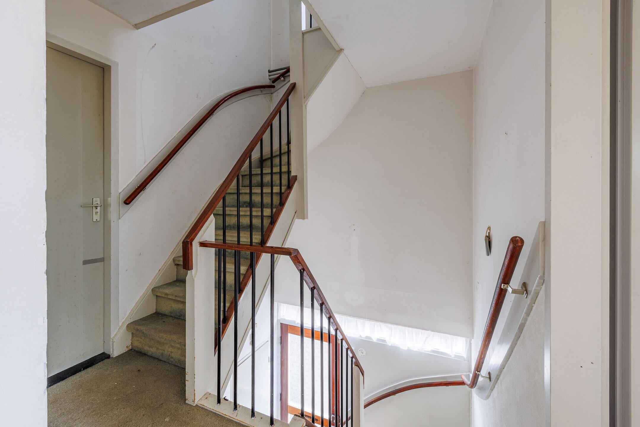 Overloop met toegang tot 2 slaapkamers, bergingsruimte met de CV.