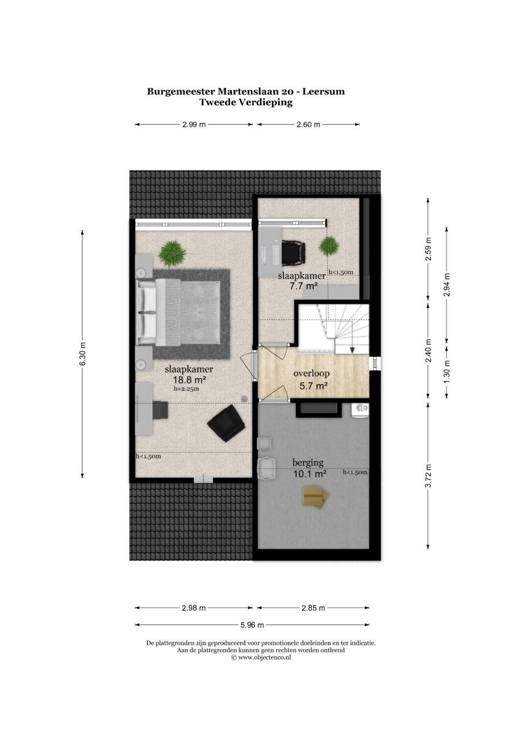 De tweede etage geeft ruimte aan 2 slaapkamers voorzien van een dakkapel en op deze verdieping is eveneens veel bergingsruimte.