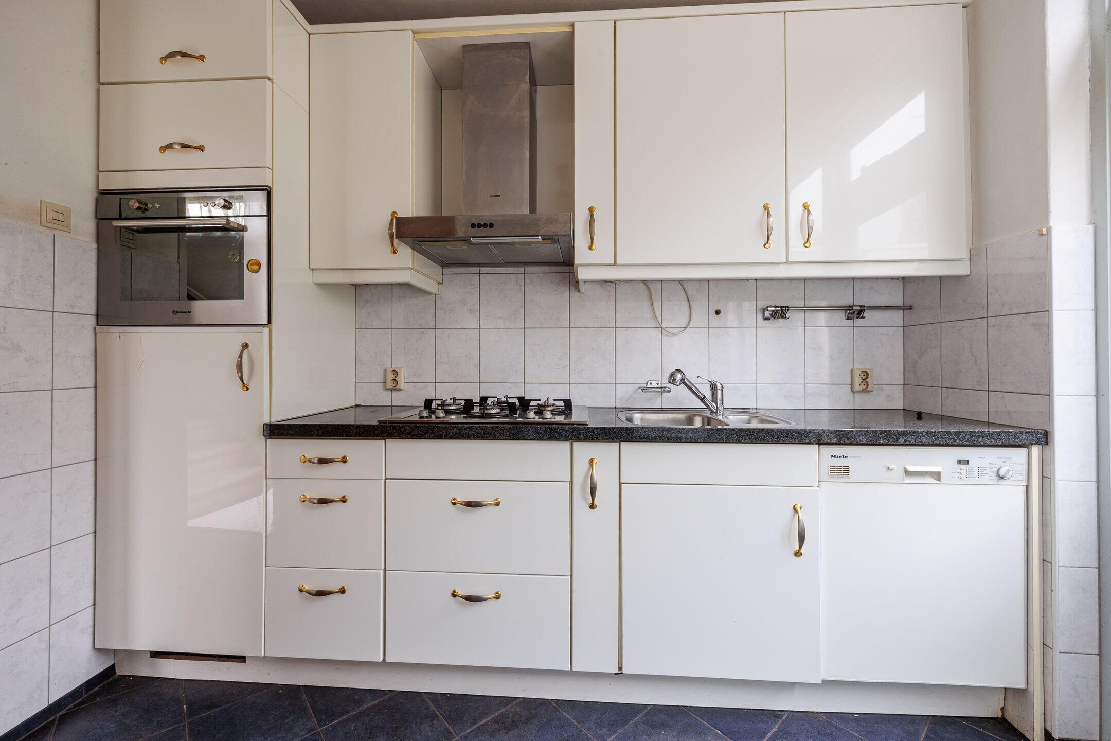 ENTREE, hal, toiletruimte, trappenkast, toegang tot de lichte woonkamer, eetgedeelte, dichte keuken is voorzien van een 4-pitsgaskookplaat, vaatwasmachine, koelkast, vriezer, oven.
